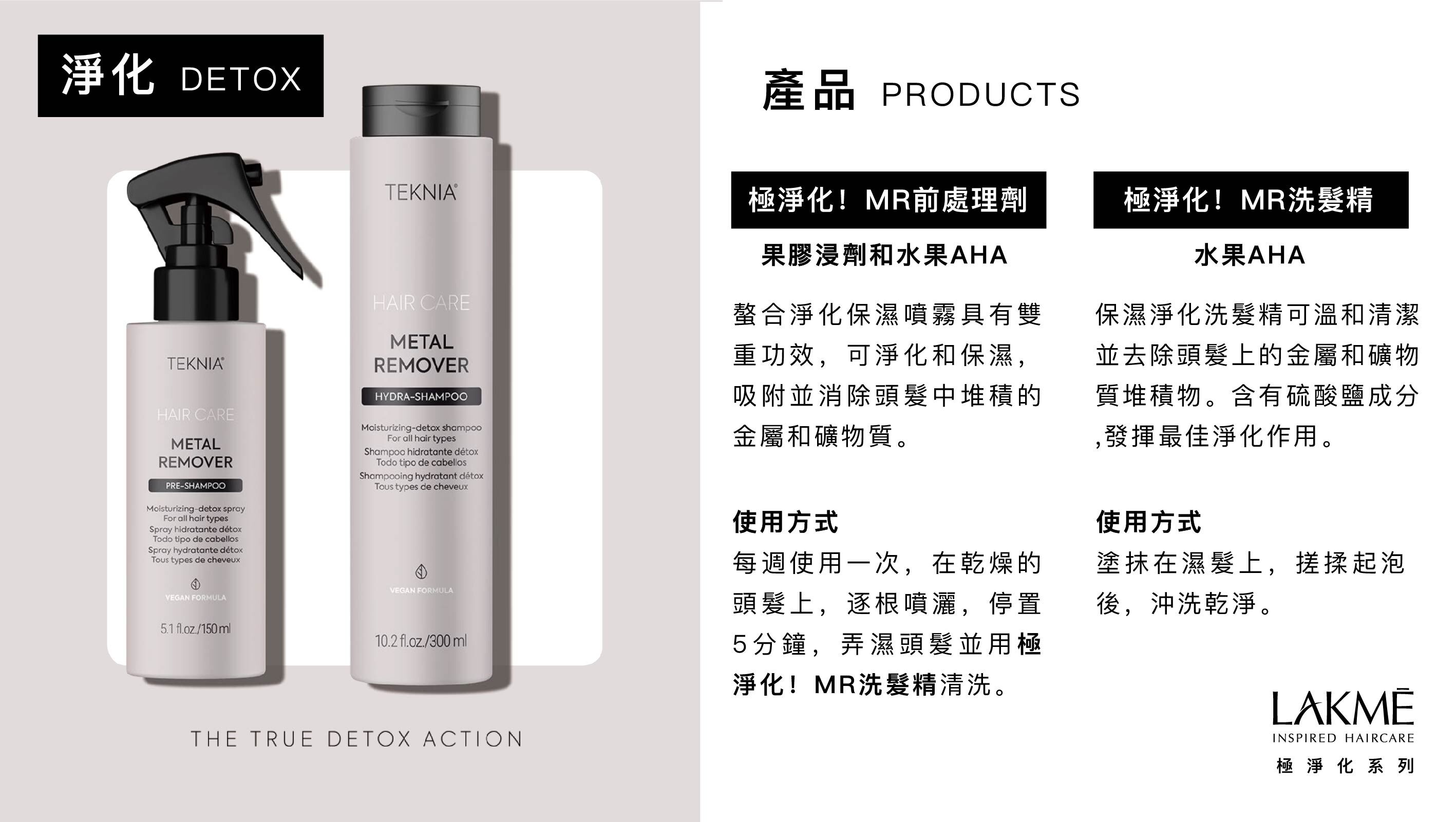 ✔ 含有天然螯合複合物(檸檬/黃瓜/蘋果),能在頭髮的纖維組織下進行淨化效果