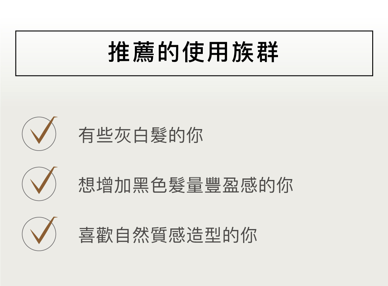 適用於灰白髮或想增加黑色亮度的頭髮造型
