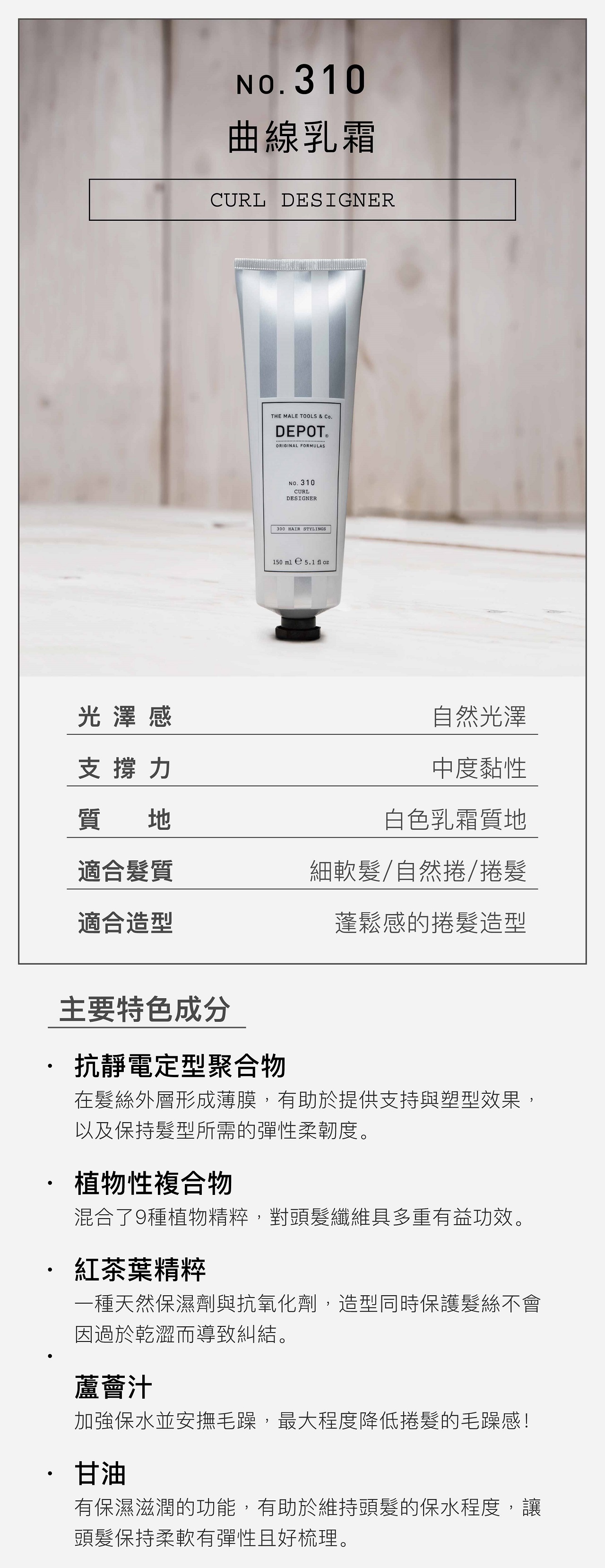 ✔ 頭髮增添亮澤、消除毛躁並有助於維持造型