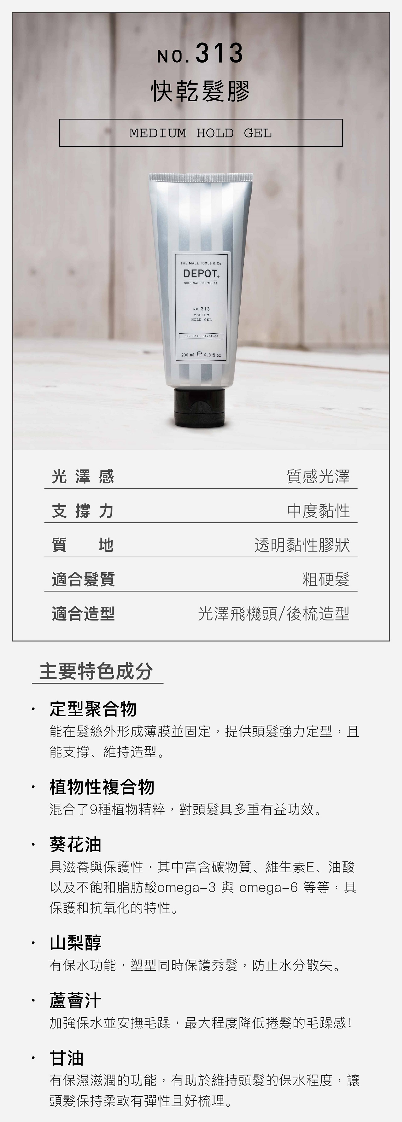 ✔ 具光澤性的中度定型髮膠