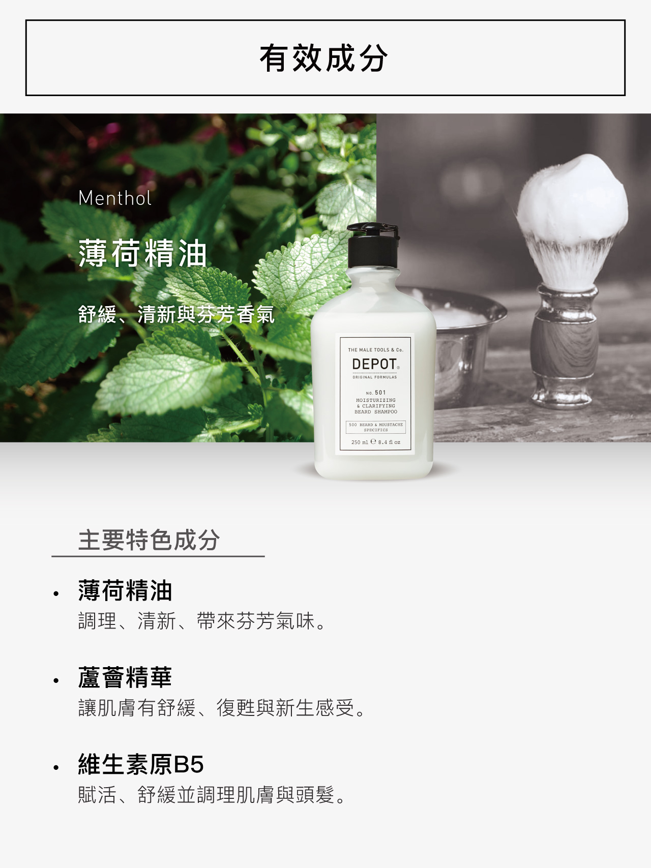 ✔ 配方不含 SLES,對鬍鬚及肌膚深入清潔