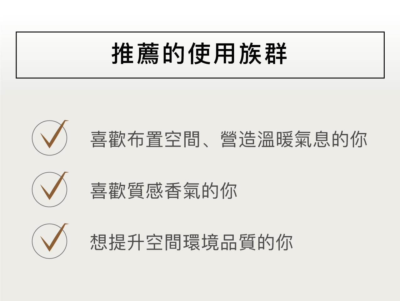 喜歡質感香氣,營造空間環境品質的溫暖氣息