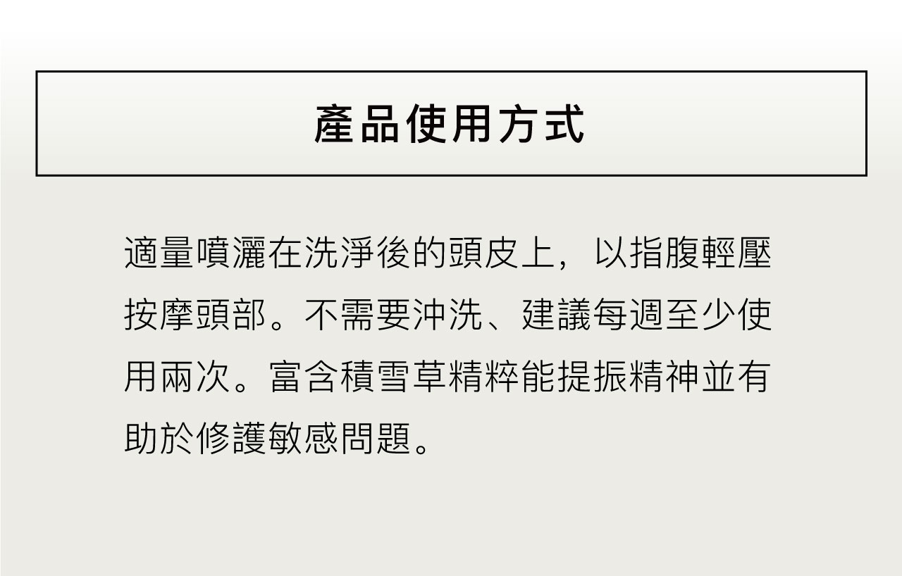 ✔ 滋潤頭皮、舒緩泛紅狀況(頭皮舒緩調理液)