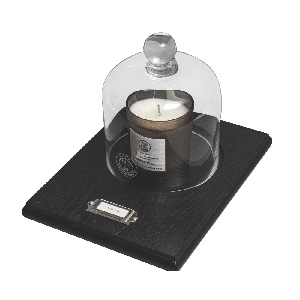 質感玻璃鐘罩加上木製托盤,可與NO.901 薰香蠟燭搭配使用,增添居家溫暖氛圍。