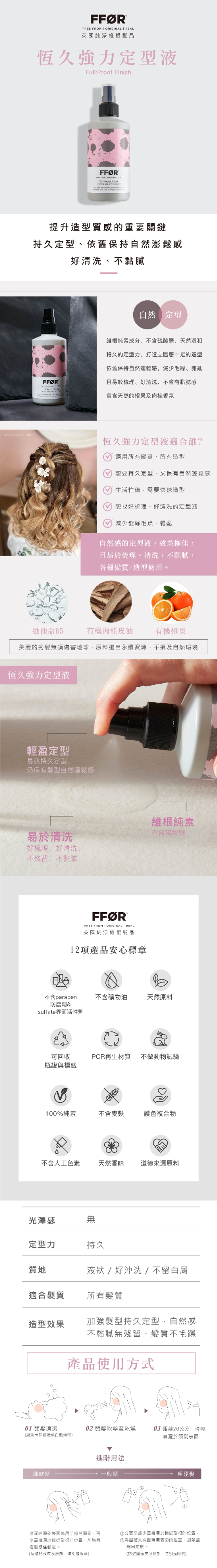 將恆久噴霧適量噴灑於需要的區塊,使用吹風機及梳子即能吹整並固定想要的造型。