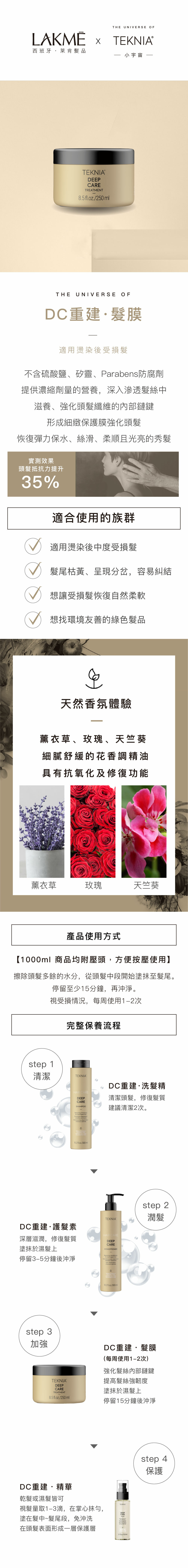 洗髮後取適量於濕髮髮尾與髮中塗抹,停留約10分鐘後沖洗,即可深度修護並提升髮絲柔順與亮澤感