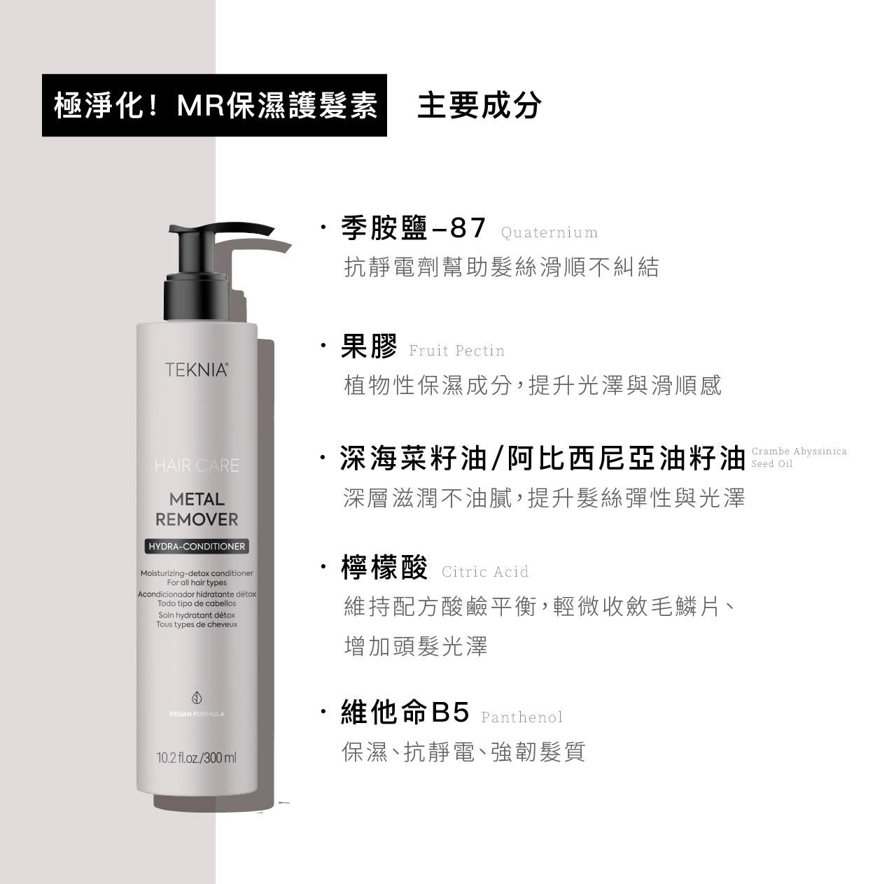 ✔ 雙重EDTA螯合劑,去除重金屬、減少水垢對毛髮的影響