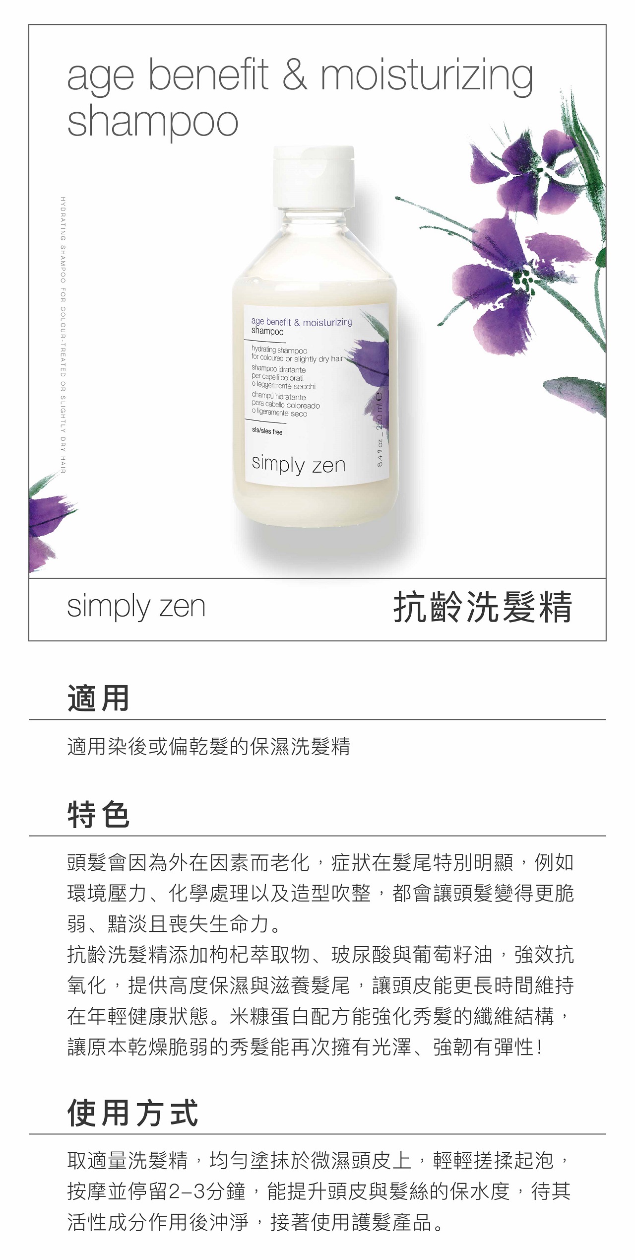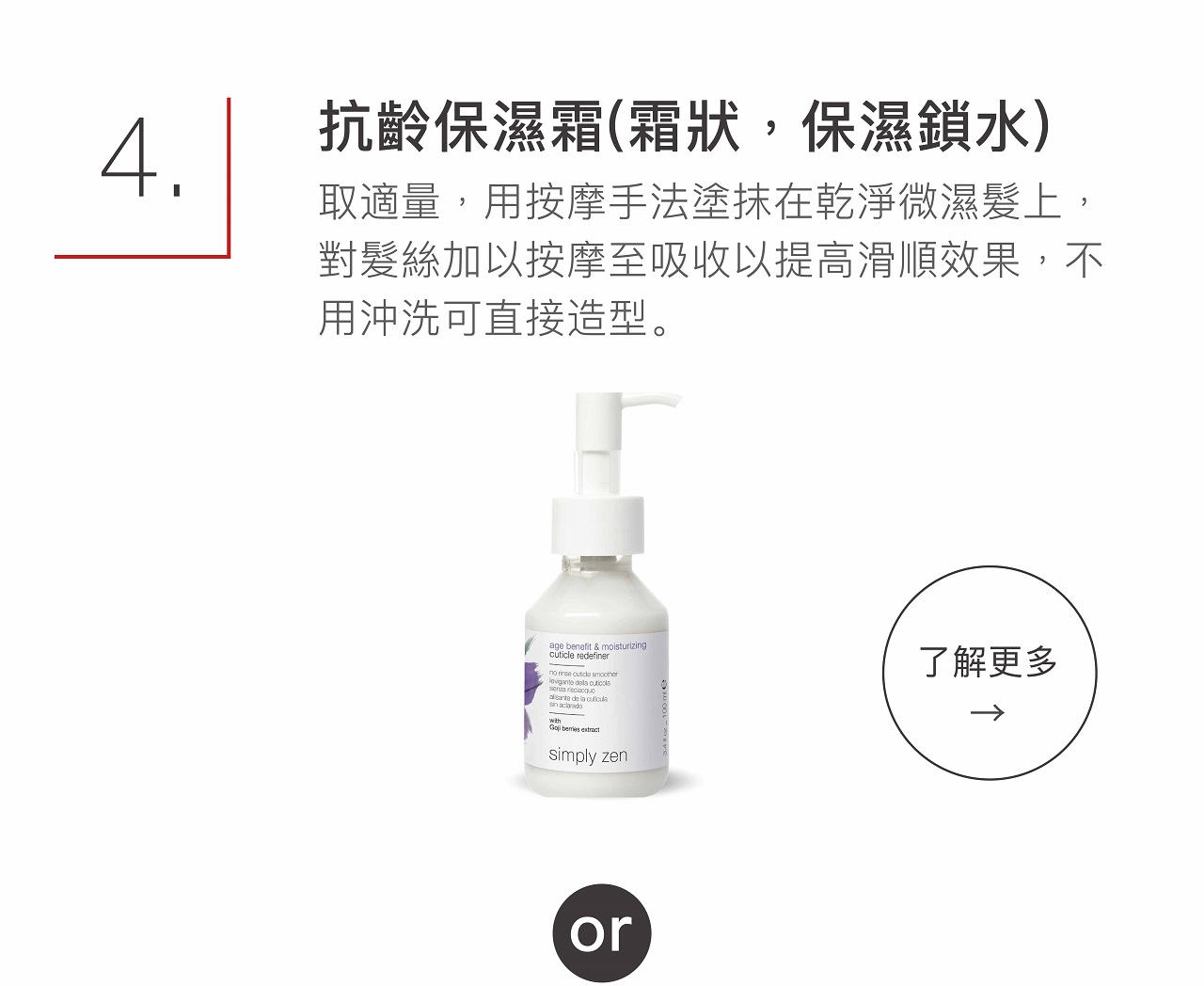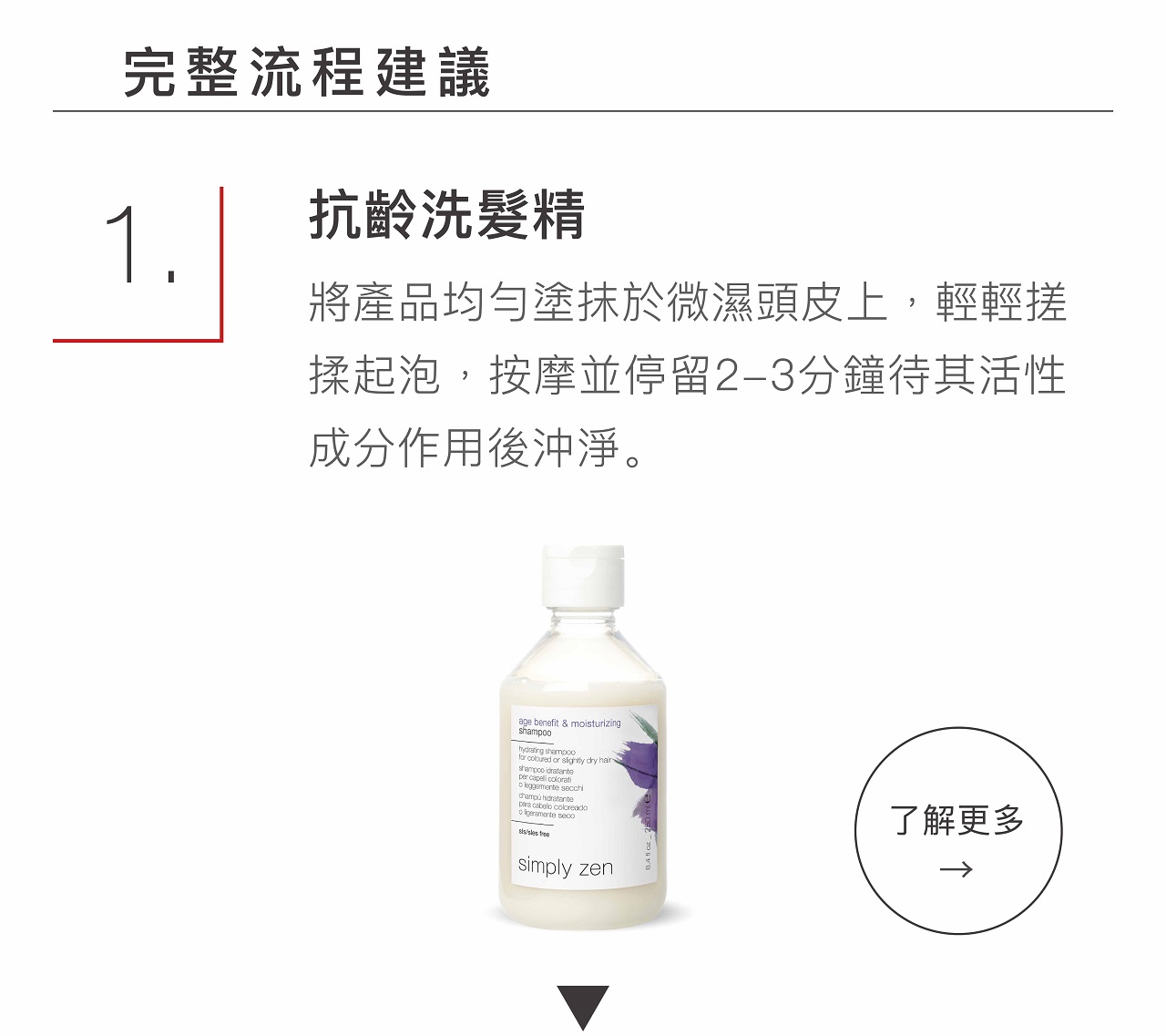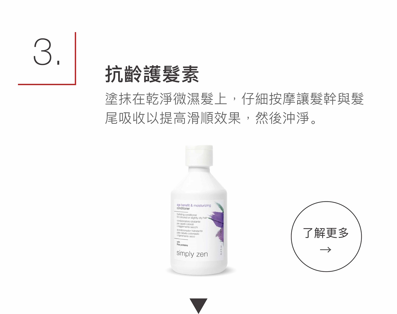 取適量洗髮精,均勻塗抹於微濕頭皮上,輕輕搓揉起泡,按摩並停留2-3分鐘,能提升頭皮與髮絲的保水度,待其活性成分作用後沖淨,接著使用護髮產品