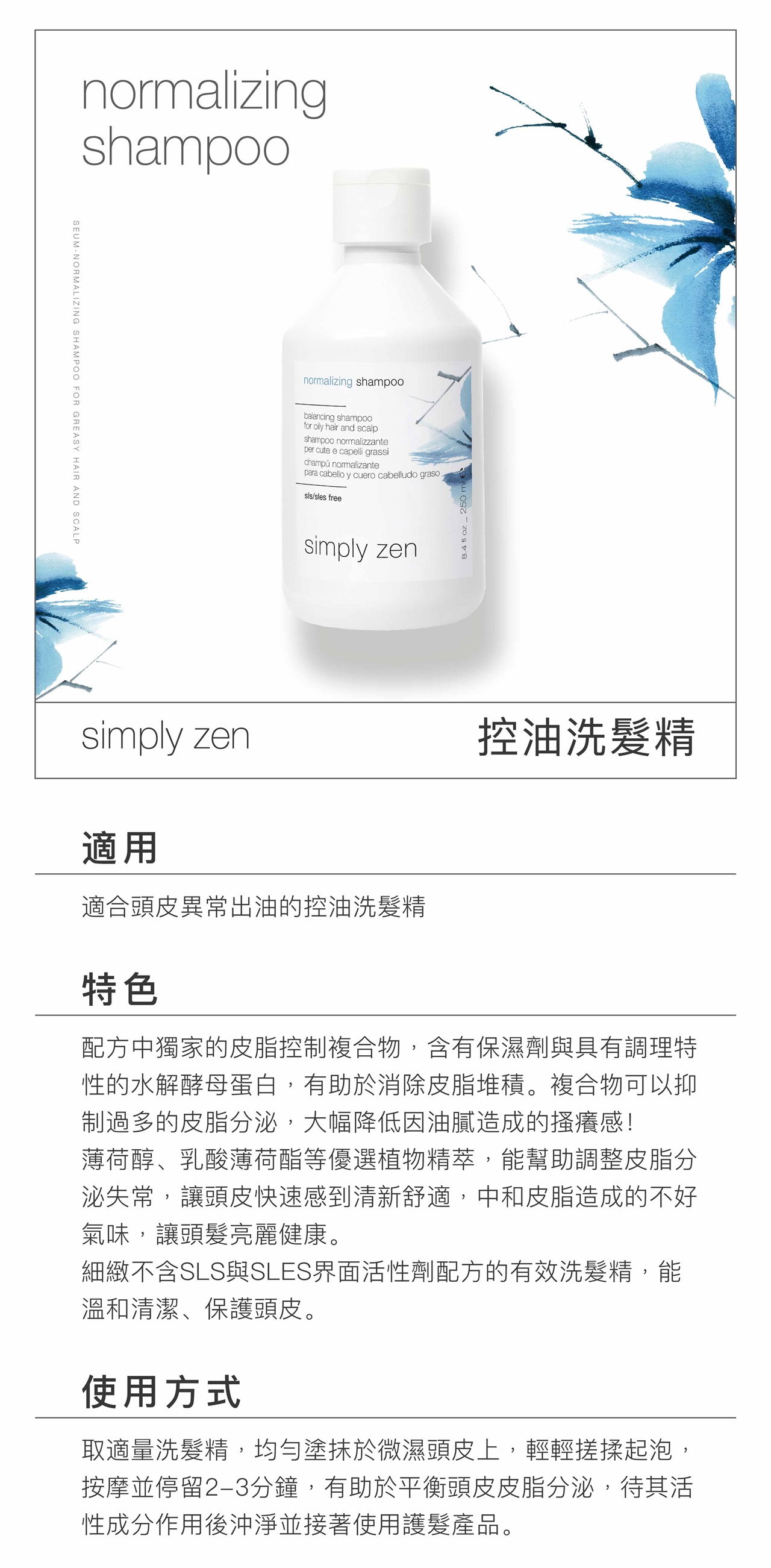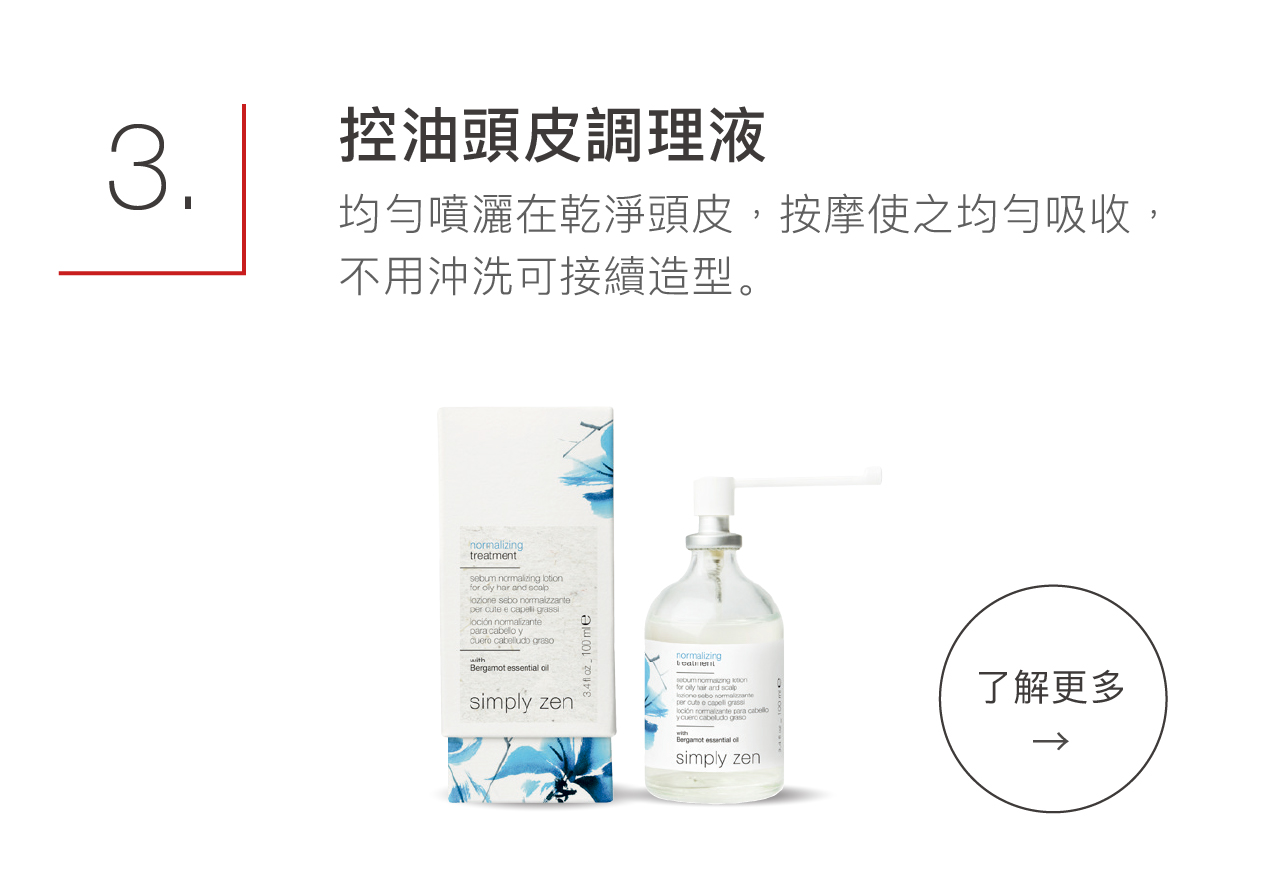 取適量洗髮精,均勻塗抹於微濕頭皮上,輕輕搓揉起泡,按摩並停留2-3分鐘,有助於平衡頭皮皮脂分泌,待其活性成分作用後沖淨並接著使用護髮產品