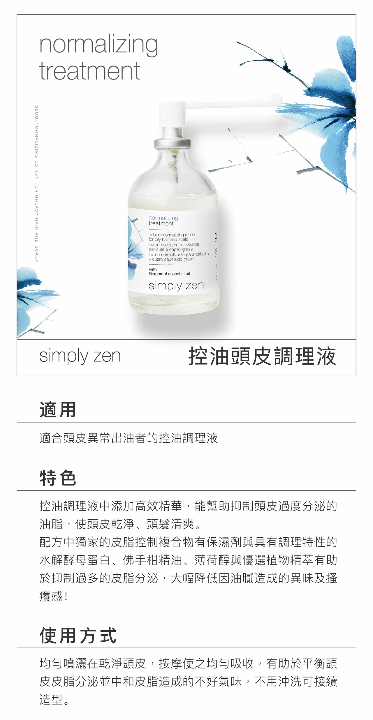 均勻噴灑在乾淨頭皮,按摩使之均勻吸收,有助於平衡頭皮皮脂分泌並中和皮脂造成的不好氣味,不用沖洗可接續造型。