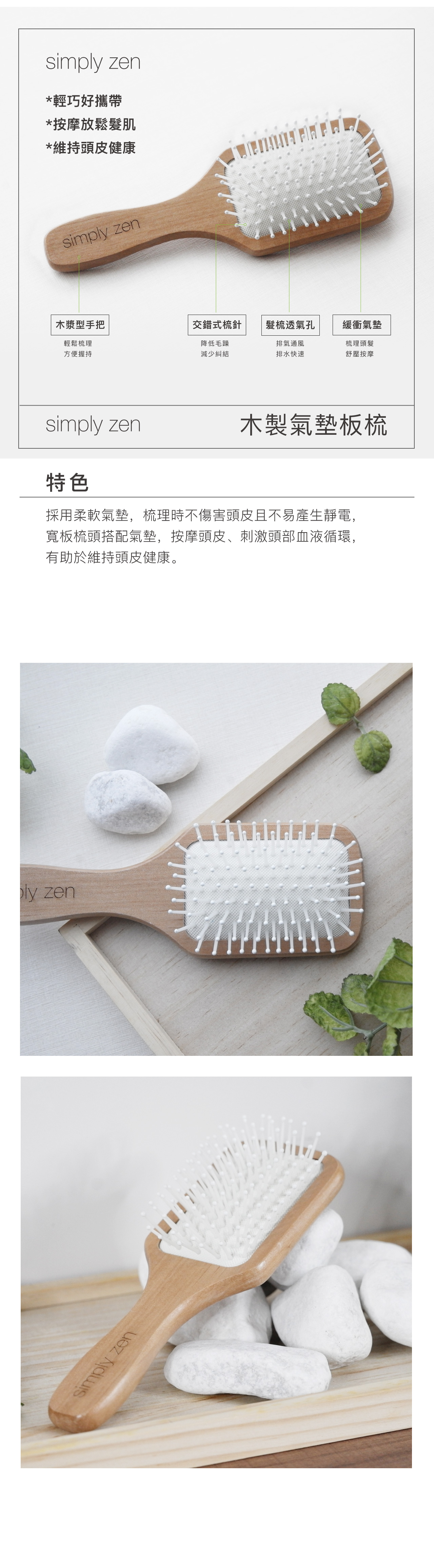 ✔ 柔軟氣墊,梳理時不傷害頭皮且不易產生靜電