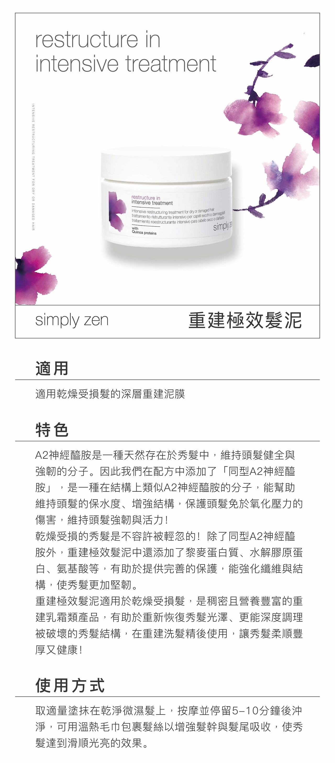 ✔ 稠密且營養豐富的重建乳霜類產品,有助於重新恢復秀髮光澤、更能深度調理被破壞的秀髮結構